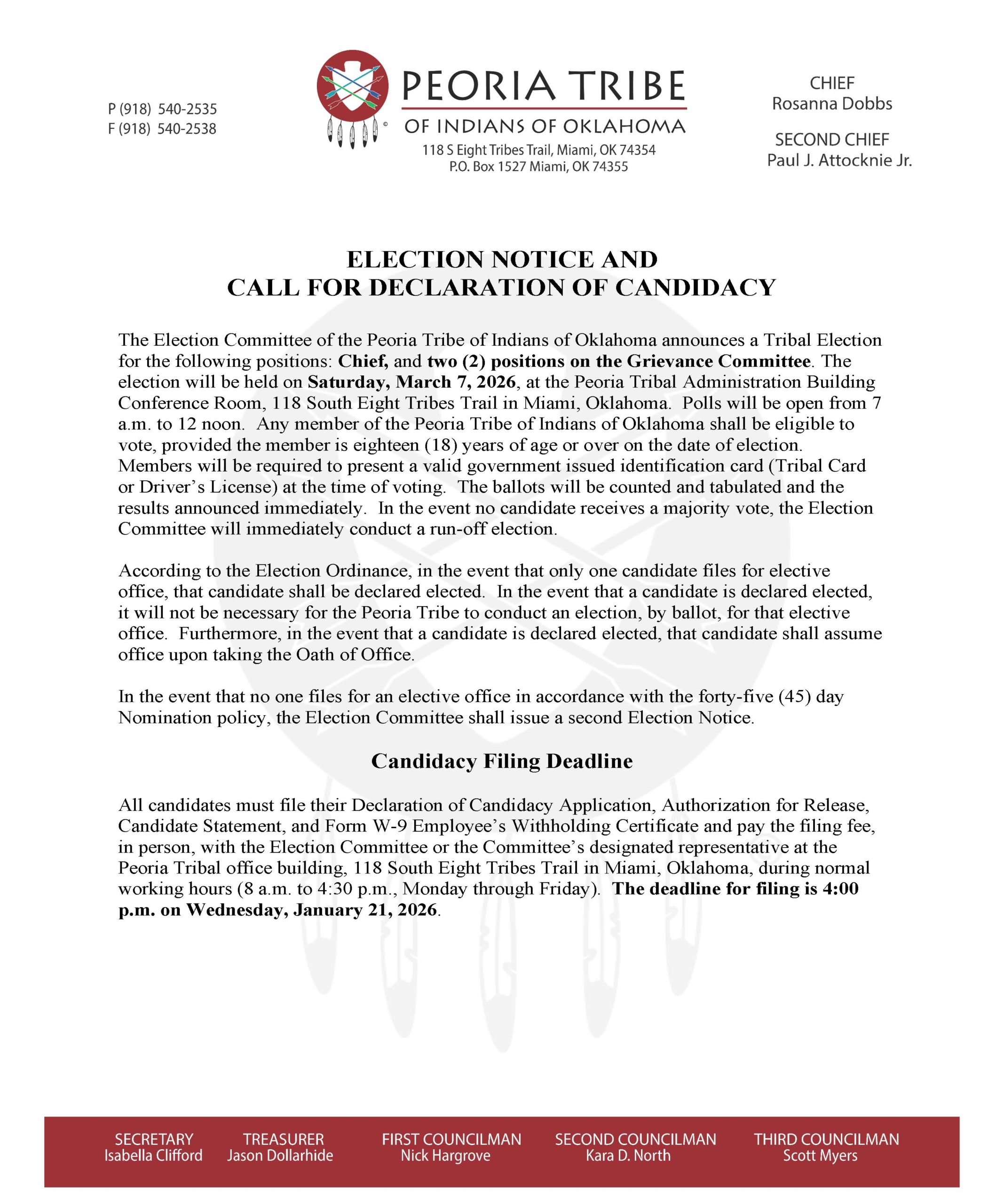 Mail to PO Box 1527 Miami, Oklahoma 74355