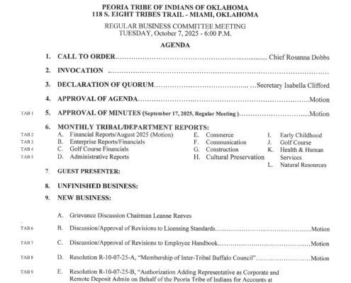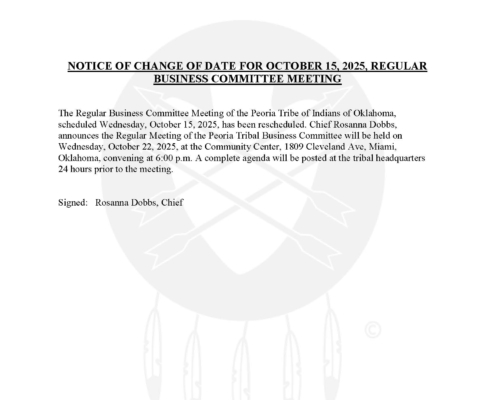 https://peoriatribe.com/wp-content/uploads/Change-of-Date-for-Reg-Mtg-Notice-October-2025.jpg22001700Annette Clarkhttps://peoriatribe.com/wp-content/uploads/logo-text-copyright.pngAnnette Clark2025-09-18 10:47:102025-09-18 10:47:31NOTICE OF CHANGE OF DATE FOR OCTOBER 15, 2025, REGULAR BUSINESS COMMITTEE MEETING