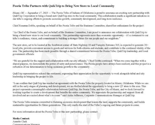 https://peoriatribe.com/wp-content/uploads/QT-Press-Release.jpg20791546Annette Clarkhttps://peoriatribe.com/wp-content/uploads/logo-text-copyright.pngAnnette Clark2025-09-17 12:07:132025-09-17 12:07:13Press Release: Peoria Tribe Partners with QuikTrip to Bring New Store to Local Community