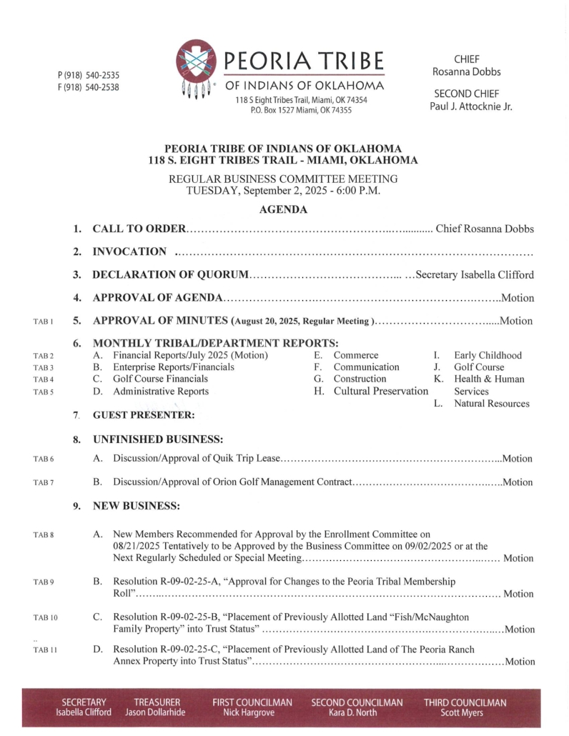BC Agenda-September 2, 2025 August 29, 2025/in Business Committee, News, Notices /by Annette Clark https://peoriatribe.com/wp-content/uploads/September-2-2025-BC-Agenda_Page_1.jpg 2200 1700 Annette Clark https://peoriatribe.com/wp-content/uploads/logo-text-copyright.png Annette Clark2025-08-29 08:36:592025-08-29 08:36:59BC Agenda-September 2, 2025