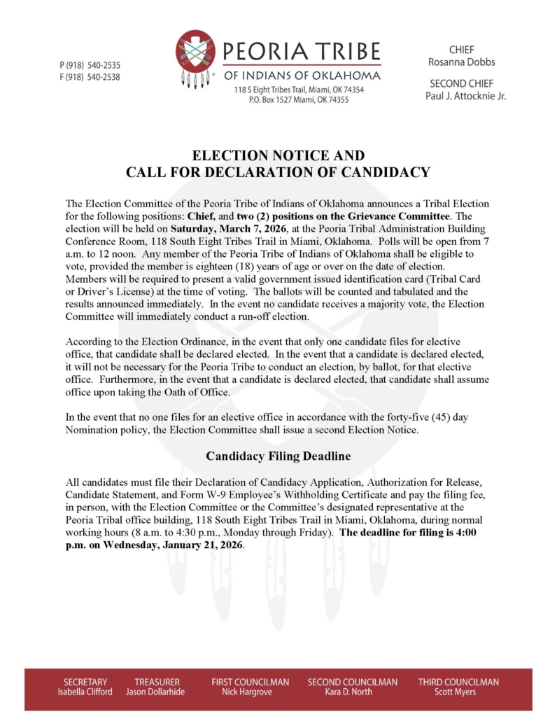 https://peoriatribe.com/wp-content/uploads/Election-Notice-and-Call-For-Cand-On-Lthead-2026_Page_1.jpg22001700Annette Clarkhttps://peoriatribe.com/wp-content/uploads/logo-text-copyright.pngAnnette Clark2025-10-24 15:51:132025-10-24 15:51:37ELECTION NOTICE AND CALL FOR DECLARATION OF CANDIDACY