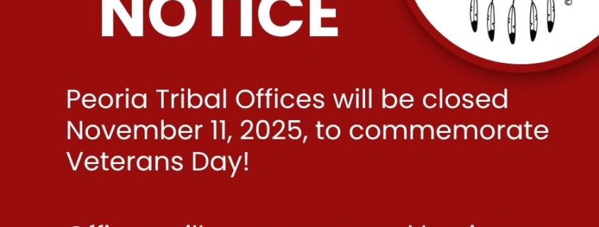 Offices Closed for November 11, 2025 November 5, 2025/in News, Notices /by Annette Clark https://peoriatribe.com/wp-content/uploads/Copy-of-Veterans-Day-Closure.jpg 788 940 Annette Clark https://peoriatribe.com/wp-content/uploads/logo-text-copyright.png Annette Clark2025-11-05 11:55:322025-11-05 11:55:32Offices Closed for November 11, 2025