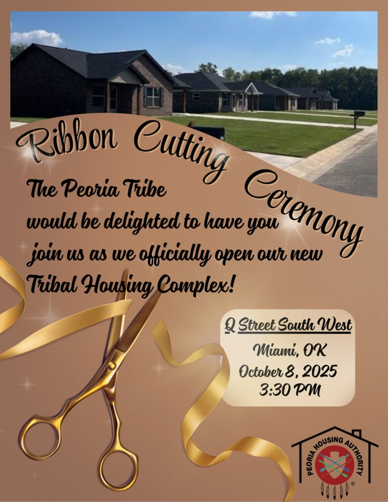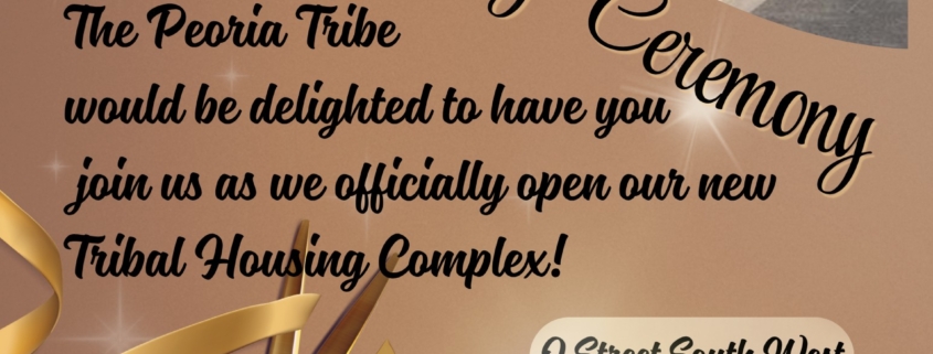 Ribbon Cutting Ceremony for New Peoria Tribal Housing October 6, 2025/in News, Uncategorized /by Annette Clark https://peoriatribe.com/wp-content/uploads/ribbon-cutting-2.jpg 2000 1545 Annette Clark https://peoriatribe.com/wp-content/uploads/logo-text-copyright.png Annette Clark2025-10-06 09:57:132025-10-06 11:03:03Ribbon Cutting Ceremony for New Peoria Tribal Housing